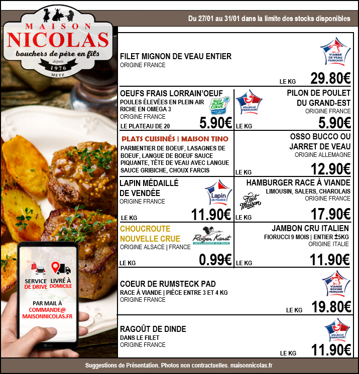 Chaque semaine, la Maison Nicolas vous propose une sélection de pièces et spécialités soigneusement choisies. Des produits de saison, au meilleur prix, pour sublimer vos repas du quotidien comme vos grandes occasions.